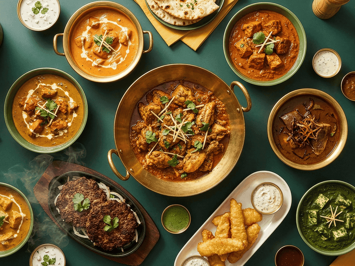 Crisp wafers layered with yogurt, chutneys, potatoes, and savory spices.